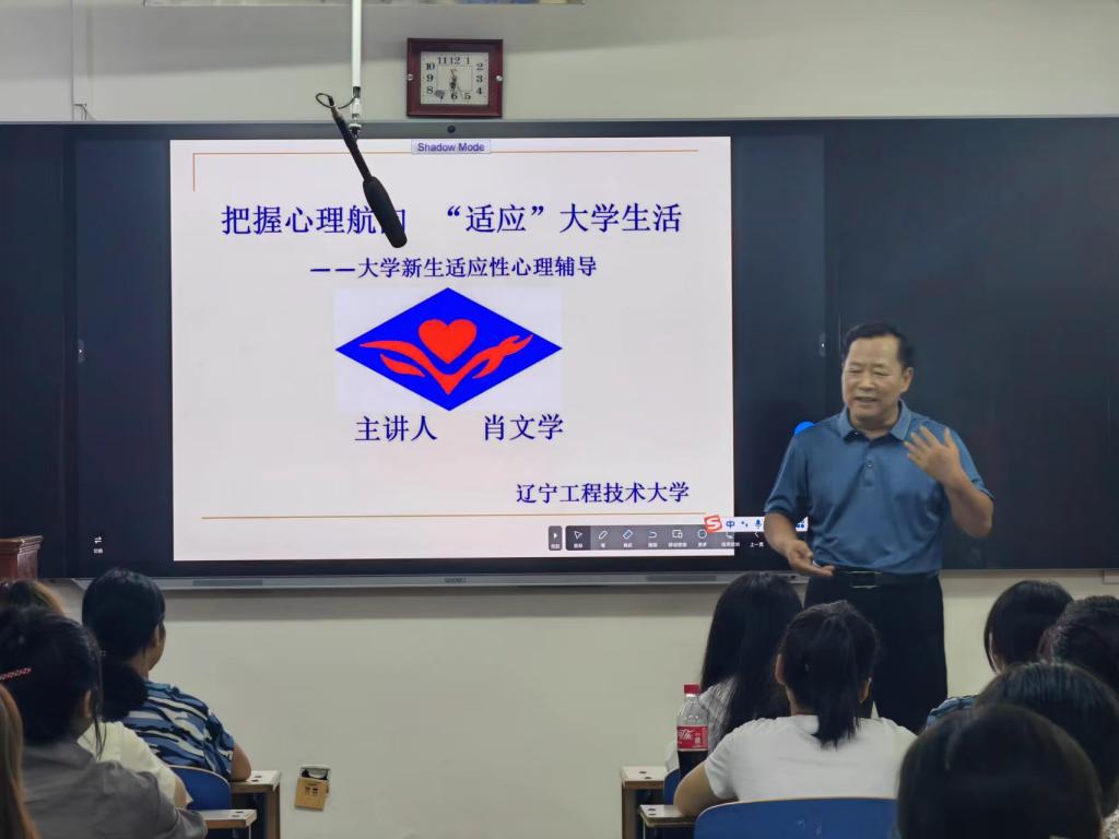 讲座上,肖文学教授以“把握心理航向,适应大学生活”为主题,围绕人际关系、情绪、学习、生活环境等方面与2023级新生畅谈大学生活的现状,讨论大学新生常见的适应性问题、压力与困惑,并给学生们分享了多种应对各种心理状况的科学方法和舒缓心理压力和情绪的小技巧。